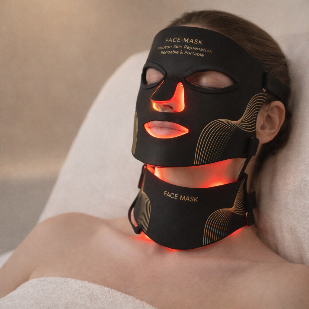 Constructed from soft, medical-grade silicone, the flexible mask contours naturally to facial and neck anatomy to maintain close skin contact and even light distribution. Precisely positioned LEDs ensure uniform output across treatment areas while remaining gentle and non-invasive for regular use.
